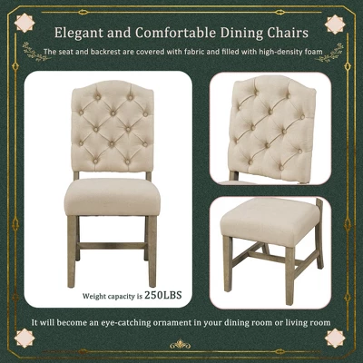 - [Elegant and Comfortable Dining Chairs] This is a chic dining chair, the seat and backrest are covered with fabric and filled with high-density foam. Its beautiful lines, back flared legs and delicate button tufting details are elegant and thoughtful in design.