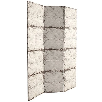 6″ Double Sided Antiqued Paneling Canvas Room Divider Gray – Oriental Furniture