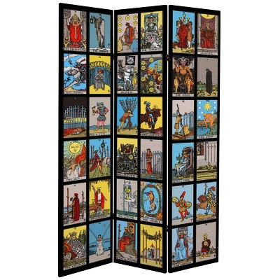 This bold graphic room divider is a reproduction of the Rider-Waite Tarot deck, the most popular Tarot deck in the English speaking world. Lightweight and easy to set up or take down, this is a uniquely creative way to divide a space, add a backdrop to your video meetings, or add a colorful accent to your home.