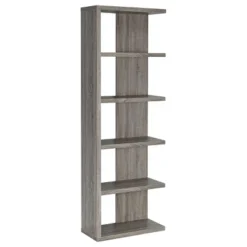 With a compact design that’s ideal for smaller rooms, this transitional bookcase is a stylish space saving solution. Crafted to tuck neatly into a corner, it’s perfect for showcasing decorative pieces without taking up too much space. The durable, black metal frame adds sturdy support and stability. Five shelves of varying sizes create an attractive display space. Pair this beautiful bookcase with a matching storage unit to easily create a put-together living space.
