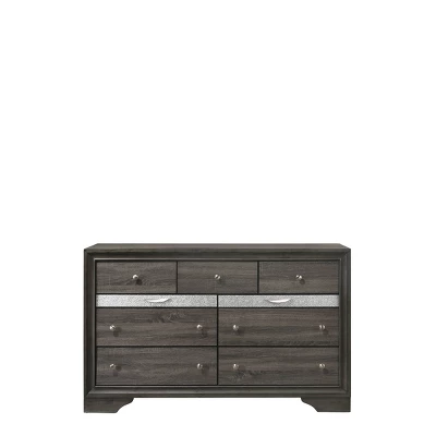 The Naima dresser is in black Finish. With 9 spacious drawers is sure to provide style and functionality for any bedroom needs. The best part of the elegant piece is the glitter drawer-front jewelry compartment with felt lined. Each drawer dresser is equipped with smooth slides for pull-out and in. Brings order to your home while providing long-lasting durability and yet lightweight. The neutral, modern style makes it suitable for men’s, women’s, or kids’ bedrooms