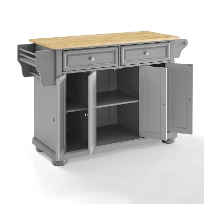 Constructed of solid hardwood and wood veneers, this kitchen island is designed for longevity. The beautiful raised panel doors and drawer fronts provide the ultimate in style to dress up your kitchen. Two deep drawers are great for anything from utensils to storage containers. Behind the four doors, you will find adjustable shelves and an abundance of storage space for things that you prefer to be out of sight. Style, function, and quality make this kitchen island a wise addition to your home.
