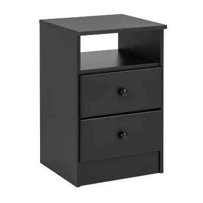 Have all you need close at hand with the Astrid 2-Drawer Nightstand. Profiled drawer fronts and solid wood knobs help provide a timeless look. Use on its own or pair it with other matching pieces from the Astrid Collection. The two drawers discreetly tuck away everything you want out of sight, while the open shelf is perfect for stashing your favorite books, blankets or knickknacks. Constructed from non-toxic, CARB-2 compliant, laminated composite woods. Ships ready to assemble, includes an instruction booklet for easy assembly and has a 5-year manufacturer’s limited warranty. Manufactured in Canada and meets all North American safety standards.