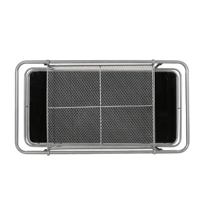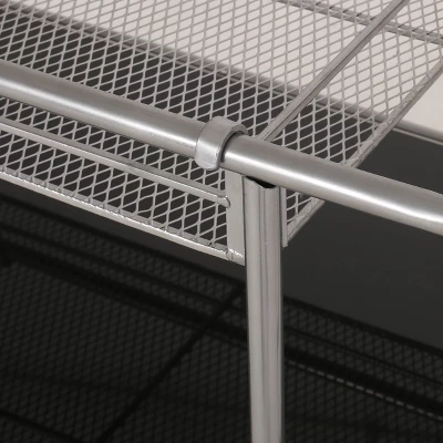 TEMPERED GLASS SHELVES: This cart features black tempered glass shelves that offer a gorgeous solid look. This glass is made to be stronger and safer than regular glass, making this more resistant to breakage and shattering. The top shelf is built from iron and features a mesh finish.
