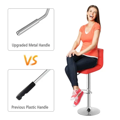 The kitchen counter adjustable bar stool will provide you with comfortable sitting experience, long-lasting service time and reliable support. Benefitting from upgraded metal lift lever, you can easily adjust height at will without much effort. Thickened and elastic sponge filled in the cushioned seat is soft so that you can sit on the bar stool for long time while feeling less fatigue. Compared with other ordinary bar stool, the 360° swivel adjustable chair with backrest can extremely improve comfort and bring much more fun to you. Meanwhile, sturdy frame ensures superior durability and sturdiness to support you firmly. Plus, rubber ring on the bottom can not only protect floor during moving but also enhance stability in stationary. Do not hesitate to add it to your cart!