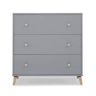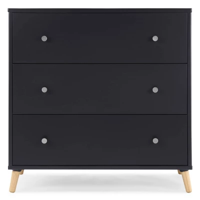 The Jordan 3 Drawer Dresser with Interlocking Drawers by Delta Children is a must-have storage unit for stylish parents and kids! Designed to elevate modern nurseries or bedrooms, it’s perfect accompaniment to your Jordan Crib with its splayed feet and two-toned detailing. With three spacious drawers, this sturdy dresser provides a range of practical storage possibilities to suit all your needs. For your child’s safety, this dresser is outfitted with an interlocking drawer system that limits the number of drawers that can be opened at one time. Use it alone or attach the coordinating Changing Top #W100710 to create a secure and stylish changing table (Changing Top sold separately).