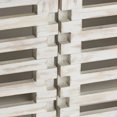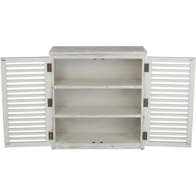 With its wood wash finish and slat doors, this handsome design offers both style and function. It features slat doors that are ideal for use in a modern farmhouse or coastal style room. The doors open to reveal a generous storage area inside. Use in a living room for extra storage, or place in a dining room or hallway.