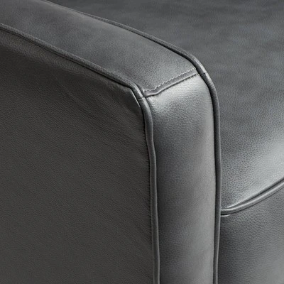 - Gray genuine leather upholstery on seats, arms, and inside back. Faux leather is on back and sides.