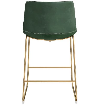 The Kiersten Counter Stool is a luxurious, timeless design for everyday dining at your counter-space. Combining ultra-modern with a sensibility that is soft and chic, upholstered in performance leatherette, the Kiersten will fit right at home in your color choice. The Kiersten is available in a variety of elegant seat finishes including vintage gray, green, black and vintage cream white, each with its own unique accent stitching in a contrasted color (for a rustic-meets-modern look), or a sleek white on white, with a linear stitch pattern. The seat’s form-fitting curves are supported by a sturdy metal base, proving that the Kiersten is comfortable and will stand the test of time.