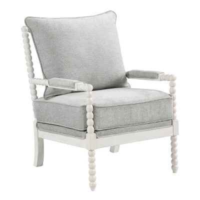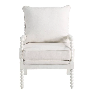 Create a designer feel to your décor with the classic Kaylee Spindle Chair. Deep, inviting cushions allow for cozy relaxation. Enjoy traditional styling thanks to a solid wood frame with beautiful turned, spindle detail. Inner coil spring cushion surrounded by dense foam and sinuous spring support will keep your chair looking beautiful for years. Choose a pair to elevate your living room’s style or add sophisticated seating to any family room.