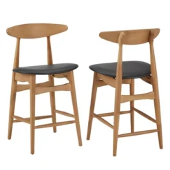 26″ Harbor Backless Swivel Faux Leather Wood Counter Height Barstool Gray/Black – Armen Living