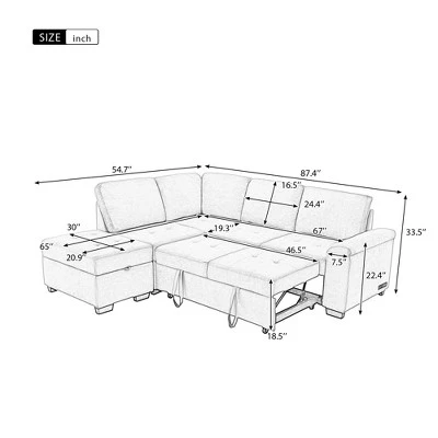 Overall Dimension: 87.4″ W*65″ D*33.5″ H.