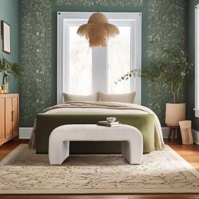 Prepare to be captivated by our Boucle Waterfall Bench, a true embodiment of personality and style. This fully upholstered bench is designed to make a bold statement in any room it graces. The exquisite texture of the boucle fabric, combined with the alluring waterfall shape, creates a visually stunning piece that demands attention.In a soothing cream color, this bench seamlessly blends into any setting, effortlessly transitioning from the bedroom to the living room or hallway. Its tonal and inviting neutral hue adds a touch of elegance and versatility to your home decor.Crafted with a solid wood frame, this bench boasts superior thickness and strength, ensuring its durability and stability. It comfortably accommodates two people, providing a cozy seating option that surpasses the quality of cheaply made alternatives found in the market.