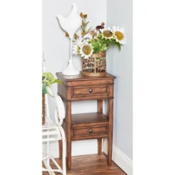 Contemporary Teak Wood Accent Table Dark Brown – Olivia & May