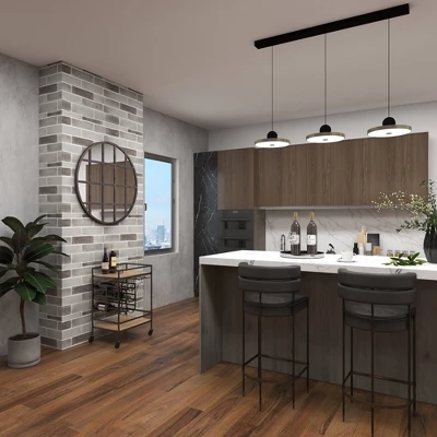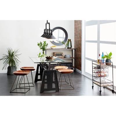 • Features an industrial inspired design with clean lines and a structural appeal