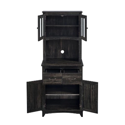 The Home Source Charcoal Tall Microwave Cart with Storage is a beautiful country kitchen storage option with a restoration twist. Finished in charcoal microwave counter surface, this otherwise country styled kitchen storage piece is accented with a more contemporary nickel hardware.