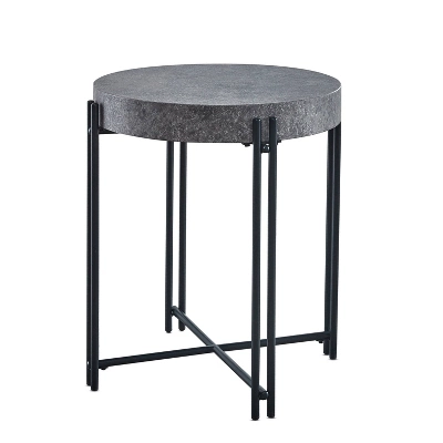 The Morgan end table presents modern industrial styling with a faux concrete top crafted of durable Silvershield® that appears to be suspended on a black iron base with stylish X-style stretchers. The neutral mottled gray top also blends beautifully with today’s neutral interiors and is sure to bring a bold new look to any living area.