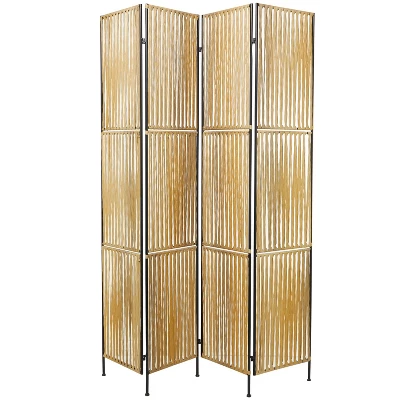 Add beauty and depth to your home as you enhance your space with this 4-panel screen room divider that blends well on light and neutral-toned backgrounds. Designed with felt or rubber stoppers at the base that prevent scratching furniture and table tops, as well as sliding around. This item ships in 1 carton. Due to the handmade nature of this item, no two will be alike, there will be slight differences in shape, size, and color. Suitable for indoor use only. This item ships fully assembled in one piece. Item features 4 panel screens. This is a single light brown colored folding panel partition. Natural style.