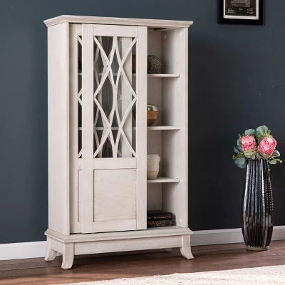Storage gets a stylish upgrade with the Aiden Lane Poyau Sliding-Door Cabinet. Interior shelves organize everything from guest linens to collectible knickknacks, while sliding cabinet doors offer a unique, window-inspired look. Perfect in your hallway or small space living area, this tall cabinet adds traditional design and rustic flair to almost any space in your home. Put clutter in its place with this double-door storage cabinet.