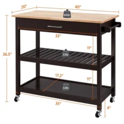 Yaheetech Rolling Kitchen Island Microwave Oven Stand With 3 Shelves And Worktop
