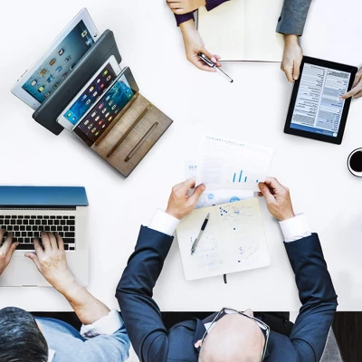 - 5 removable tablet/phone racks, cable mgmt, anti-slip feet.