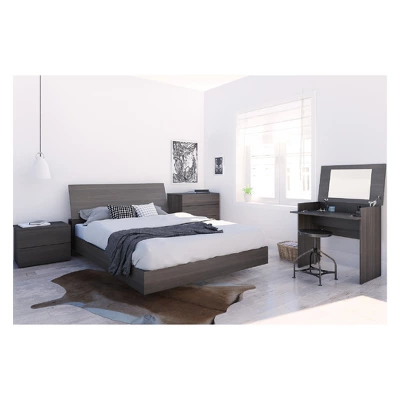 Nexera queen size platform bed in Ebony can be paired with different Nexera queen size headboards to create a complete bed set. Its unique & modern design gives the impression the bed floats above the ground, giving the entire room an airy feel. This bed also features a unique metal and hardwood slat construction allowing for easy assembly, sturdy construction and easier handling.