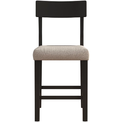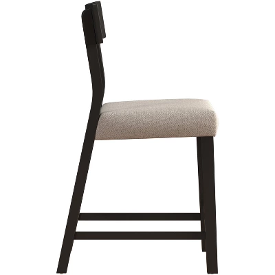 Defined by simple practicality, this counter height stool is an ideal choice for modern or farmhouse settings. Constructed of wood with a black finish, this stool features an open panel back and footrest for your back and foot ease. The non-swivel counter stool seat is covered in a 100% polyester, taupe colored fabric adding a touch of sophistication. It will be a perfect addition to your counter or kitchen island to provide a comfortable seating experience. Assembly required.