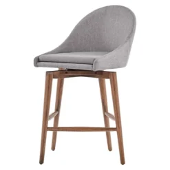 Costway Set Of 2 Nailhead Saddle Bar Stools 24” Height W/ Fabric Seat & Wood Legs BeigeGray