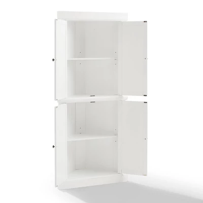 With charming beadboard details, the Shoreline Pantry provides a dash of coastal flair to home organization. Comprised of two identical stackable pantries, this set is connected with a sturdy metal plate, offering ample storage without taking up valuable floor space. Ideal for smaller rooms, the Shoreline Tall Corner Pantry offers adjustable shelving and is designed to tuck neatly into any corner of the home. OVERALL PRODUCT DIMENSIONS: 31.75”W X 15.75”D X 72”H