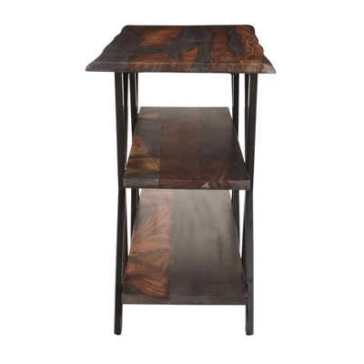 Elevate your space with this three-tiered console table engineered with long-lasting elegance in mind. Curated with durable materials such as Sheesham wood and iron, the open shelves are perfect for displaying your best moments while making your space feel airy and open. Complete the look with the entire collection to fill your room with warmth and style.