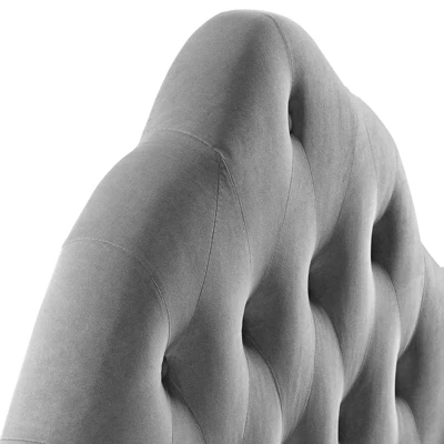 Regal curves and a slightly curved silhouette blend with plush vintage glamour to create the Sovereign Performance Velvet Queen Headboard. A delightful focal point for any master suite or guest room, this upholstered velvet headboard for queen bed frames provides a soft, stain-resistant update for luxurious comfort while relaxing, reading, or conversing in bed. Solidly constructed from plywood and fiberboard with dense foam padding, this diamond tufted queen size velvet headboard comes with five mounting positions that are height adjustable from 45″ – 52.5″.