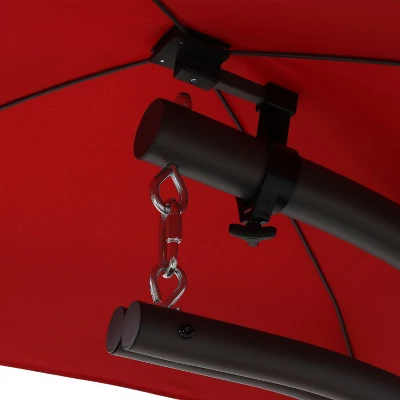 Bring the experience of floating on a cloud with this comfortable floating chaise lounge chair. This hanging lounge chair gives you the feeling of being weightless, great for taking naps after a long day in the sun. This hanging hammock lounge chair is a wonderful addition for the patio, deck, porch, front yard, or around the fire pit. With its beautiful, curved design in the stand, chair, and canopy, this dynamic chair will complement any outdoor space and will look – and feel – stunning. A headrest and padded cushion made from high-quality fabric is sure to keep you comfortable all day long. The durable black powder-coated steel cCshaped stand elevates you securely while remaining strong against the elements. Two padded armrests allow you to relax your arms and shoulders while reclining outside. The removable canopy umbrella keeps you shaded and cool on sunny days and adds a beautiful pop of color anywhere.