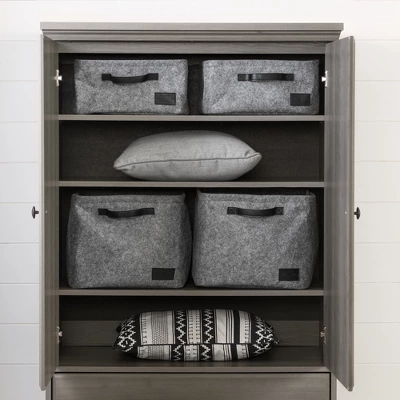 Storing clothing and accessories just got more stylish with the Versa 2-Door Armoire with Drawers from South Shore. With two drawers on the bottom and four shelves, you’ll find enough room for sweaters, jeans, T-shirts and all your accessories in this wardrobe armoire. Use as storage for your everyday items or as a place to organize and pack away off-season clothing when it’s not in use.