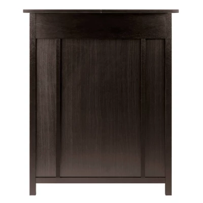 The Yukon Wine Cabinet – Espresso – Winsome shows off a wine collection and adds another level of hospitality to a home. This wooden wine bar made of sturdy hardwood in a deep espresso finish. This handsome unit stores up to 14 bottles, with additional wine storage in the lower cabinet. Glasses can be stored in the stemware rack. The table top can be extended to accommodate guests who are ready to belly up and admire a fabulous wine collection.